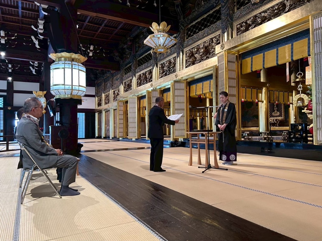 2025(令和7)年7月30日(水)、御影堂におきまして石川教区 羽水組十九日講の金子副講長をはじめ、講員3名の皆様が懇志進納のため来山されました。