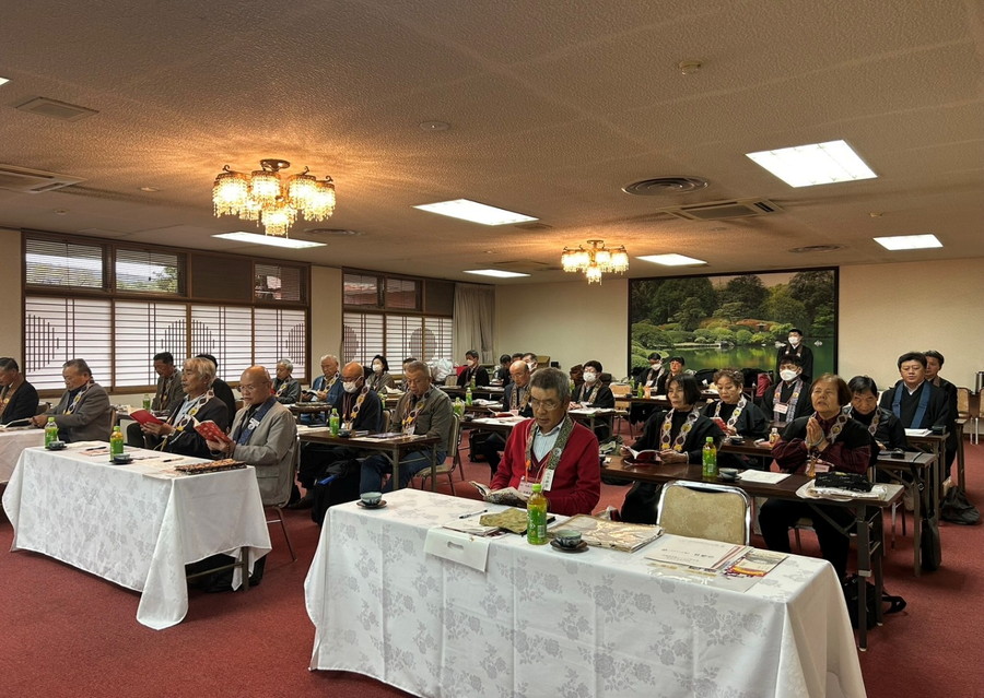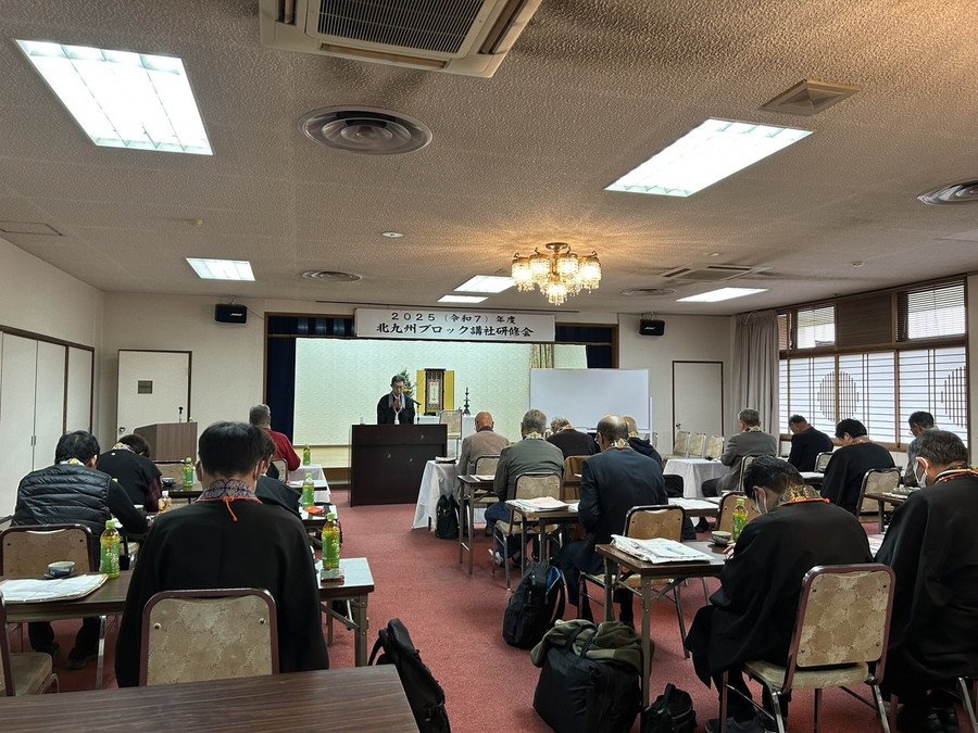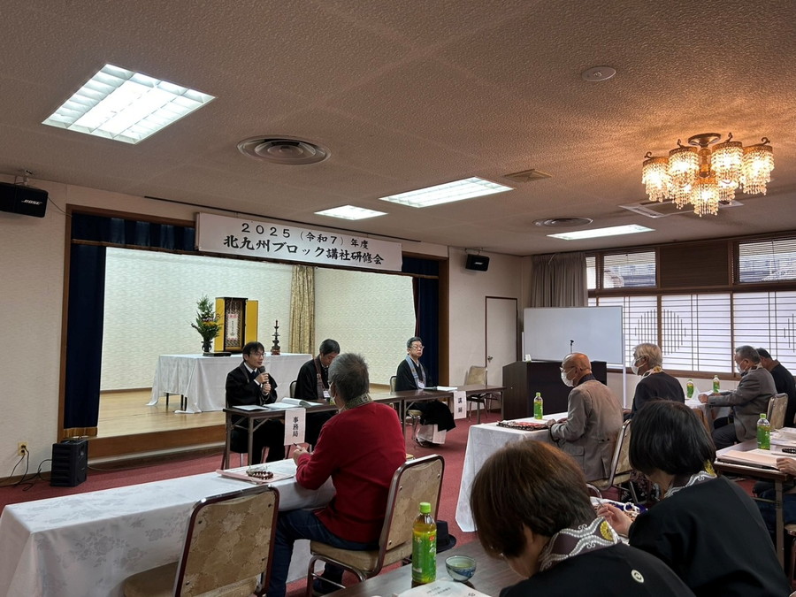 この度の研修会は、福岡教区が担当教区となり、11月12日(水)・13日(木)に福岡県筑紫野市大観荘にて開催され、5講24名の皆様にご参加頂きました。 大分教区大海組長光寺 大在 紀師を講師にご法話をお聴聞させていただき、ご参加の皆様より講社活動の現状や課題をご発言いただくなど実り多き研修会となりました。